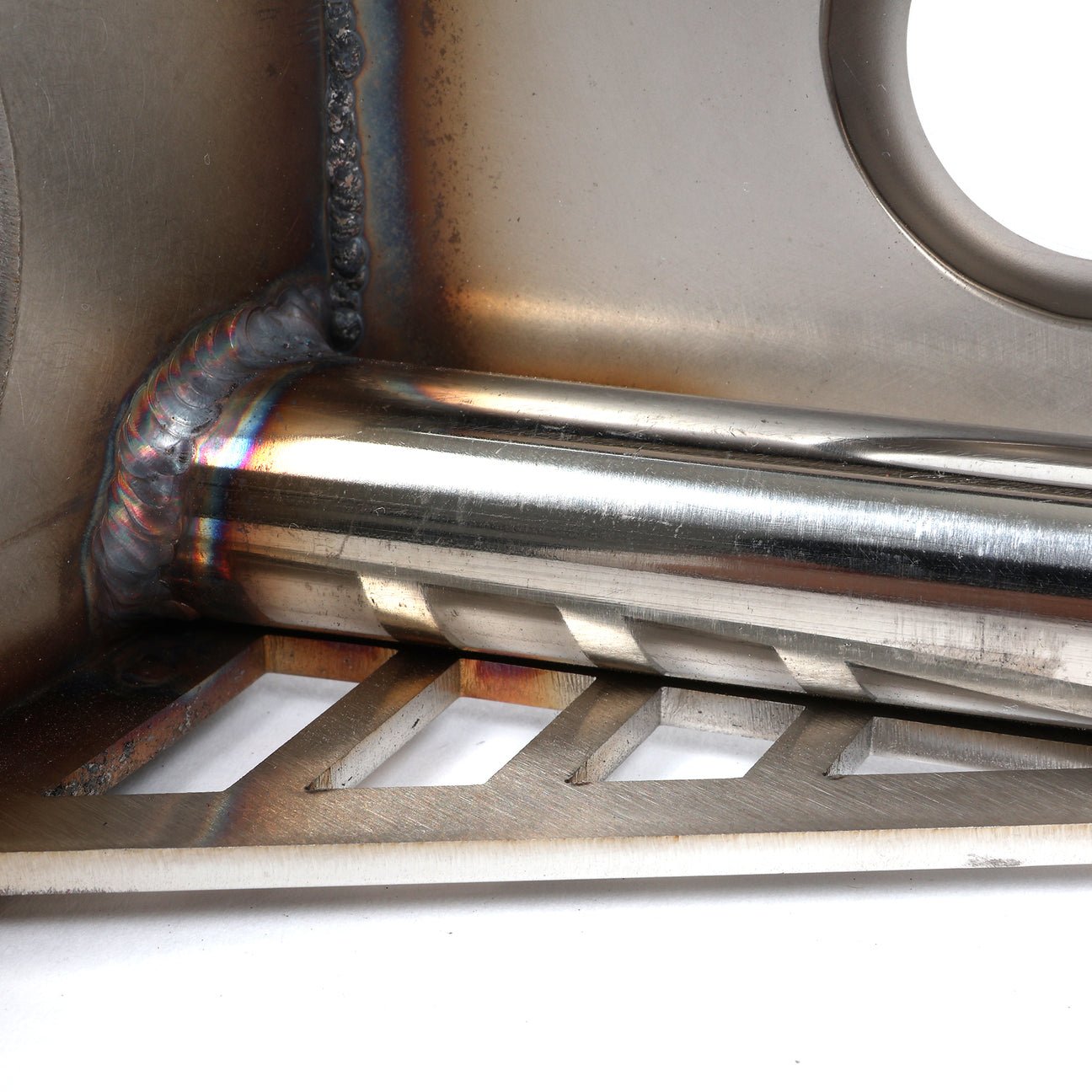 Our strut bars are designed with two horizontal steel bars tying each shock tower together. Bars are then welded together with no pivoting parts for maximum chassis rigidity. This will stop your car from flexing during track events as well as during casual spirited driving.