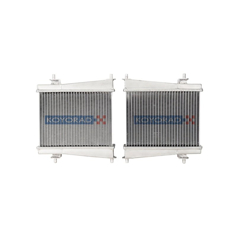 Koyorad is proud to introduce all-aluminum remote radiators for the 2020 Toyota Supra and 2018 to current BMW Z4 3.0L.  Features include: hand welded end tanks, furnace brazed and high density 48mm Hyper cores, and split directional louvered fins.  Radiator core thickness has been increased by nearly 80% over the OEM auxiliary radiators to boost the platform’s heat capacity and endurance.  An all-aluminum construction provides an excellent upgrade to the OEM plastic tank heat exchangers which are prone to cracking over time.  Packaging includes both driver and passenger side remote radiators.  All mounting provisions are retained for the OEM rock guards and shrouding.  The OEM quick connect hoses are a direct fit allowing an easy 30 minute installation per side with common hand tools.  Advanced engineering and design methods, impeccable TIG welds, proficient furnace brazing, and triple pressure testing for quality has earned Koyorad an excellent reputation in performance cooling worldwide.