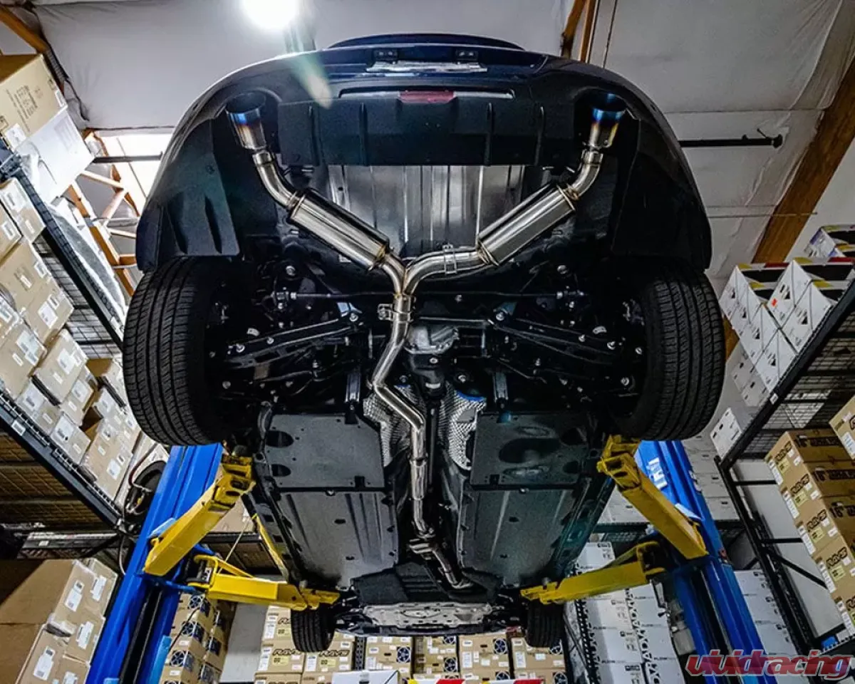 Utilizing 3-inch 304 stainless steel from the catalytic converter back, the VR Performance GR86 exhaust eliminates the hindering back pressure created by the factory system. Each mandrel bend needed was precisely placed to ensure optimal flow through the exhaust while allowing it to fit snugly against the undercarriage. Hardware and gaskets are provided and no modification is needed for installation. The 120mm diameter tips fill out the factory exhaust cutouts in the bumper to tie everything together.